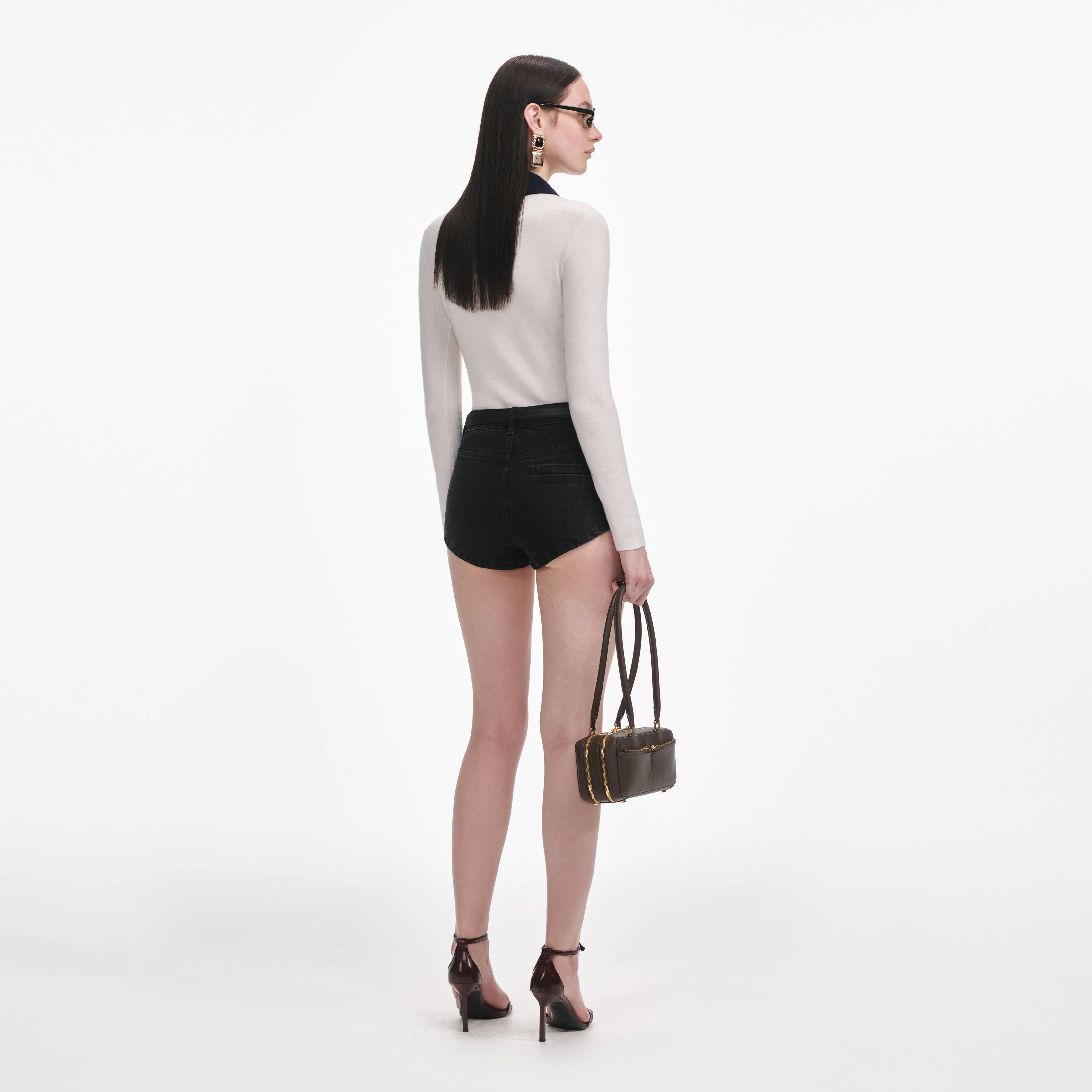 We love short shorts, and this black denim pair is definitive proof that less is more. Style it's high-waisted fit with a t-shirt and boots for date night or amp it up with heels for extra glamour.