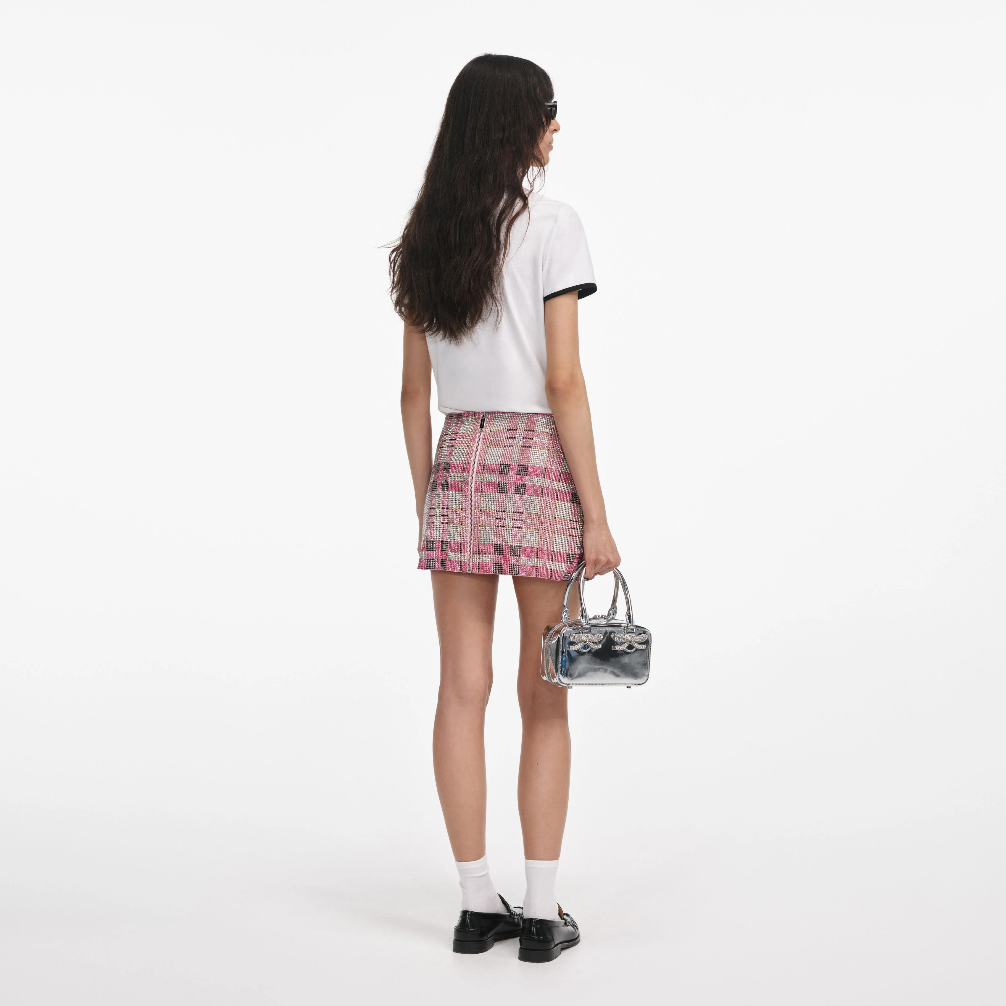 Channel noughties chic in this jersey t-shirt, with its contrast trims and embroidered black logo. Use it to build off-duty looks or style with glittering minis for a cool girl take on party style.